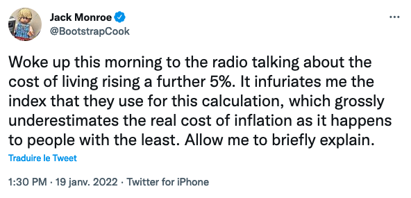 Jack Monroe documente la hausse des prix des produits de première nécessité depuis plus d'une décennie. Dans un récent fil Twitter, elle a donné d'innombrables exemples de ces changements drastiques de prix :